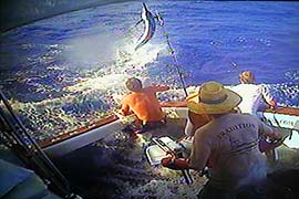 Further north in the Ribbons, Capt. Tim Richardson on Tradition sent me these video stills of Lydie and a frisky 400lb-er which she released on 50lb yesterday. Pete and Lydie are back on board fishing 50lb this week for their fifth year with Tim.