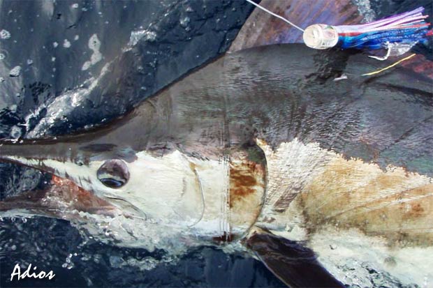 Gold Coast GFC President Darren Malaquin reported that the final two sat tags, a part of the Great Northern Brewing Gold Coast IGFA Great Marlin Race which (part of the Cabo Hatteras Billfish Shootout in April), were launched over the weekend. Both were blue marlin for Don Hawker, a first time marlin fisherman from New Zealand, and the club’s Tim Read fishing on Adios (photo of one of the fish above). They also had another shot from a striped marlin which would have topped an already impressive day.