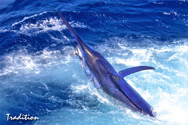 Likewise, a later start for the team on Capt. Tim Richardson’s Tradition. Tim put the baits in at just after 2pm after a  morning swimming on the reef for his guests. By 2:30, Laura had released the giant black marlin she had come for (photo below).
