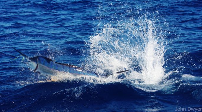 Sunshine Coast: Some great pics have come in from John Dwyer who was fishing on Ymer with Ben Stasiak on December 30 (and they are awesome pics too John, thank you!)  Ben tells me that the bite was pretty continuous all day with boats hooked up everywhere.  He said they had a big of a tug of war with the dolphins who were pinching a lot of their live baits, making it a little harder, but nonetheless they had a fantastic day. And wouldn’t you with 13 blacks and 2 sails for the day?!