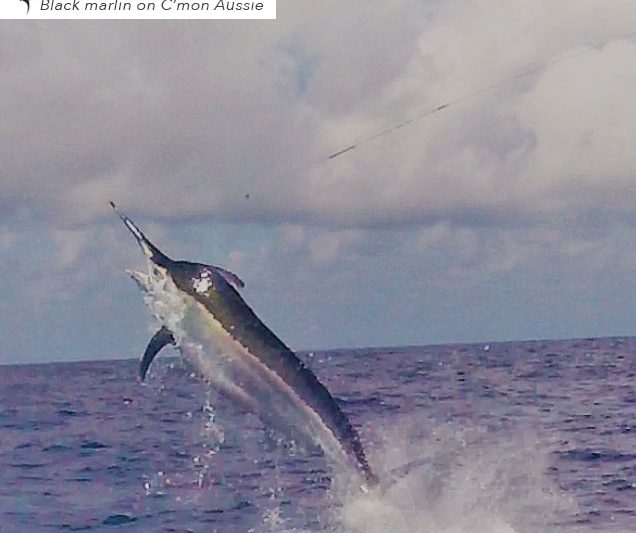 Catch up report from the past few days from Rod Hawkins’ C’mon Aussie with Capt. Jared Weir back up and fishing this week. Rod says they had a good day Wednesday with one that Jared put at 950 and missed another for first time angler Troy Harris. The day before (Tuesday) they got one Jared put at 750 for another first time angle Ty Peachy. Yesterday they added another at 800lber in the dark to make a 750, 950 and 800 in the last 3 days!