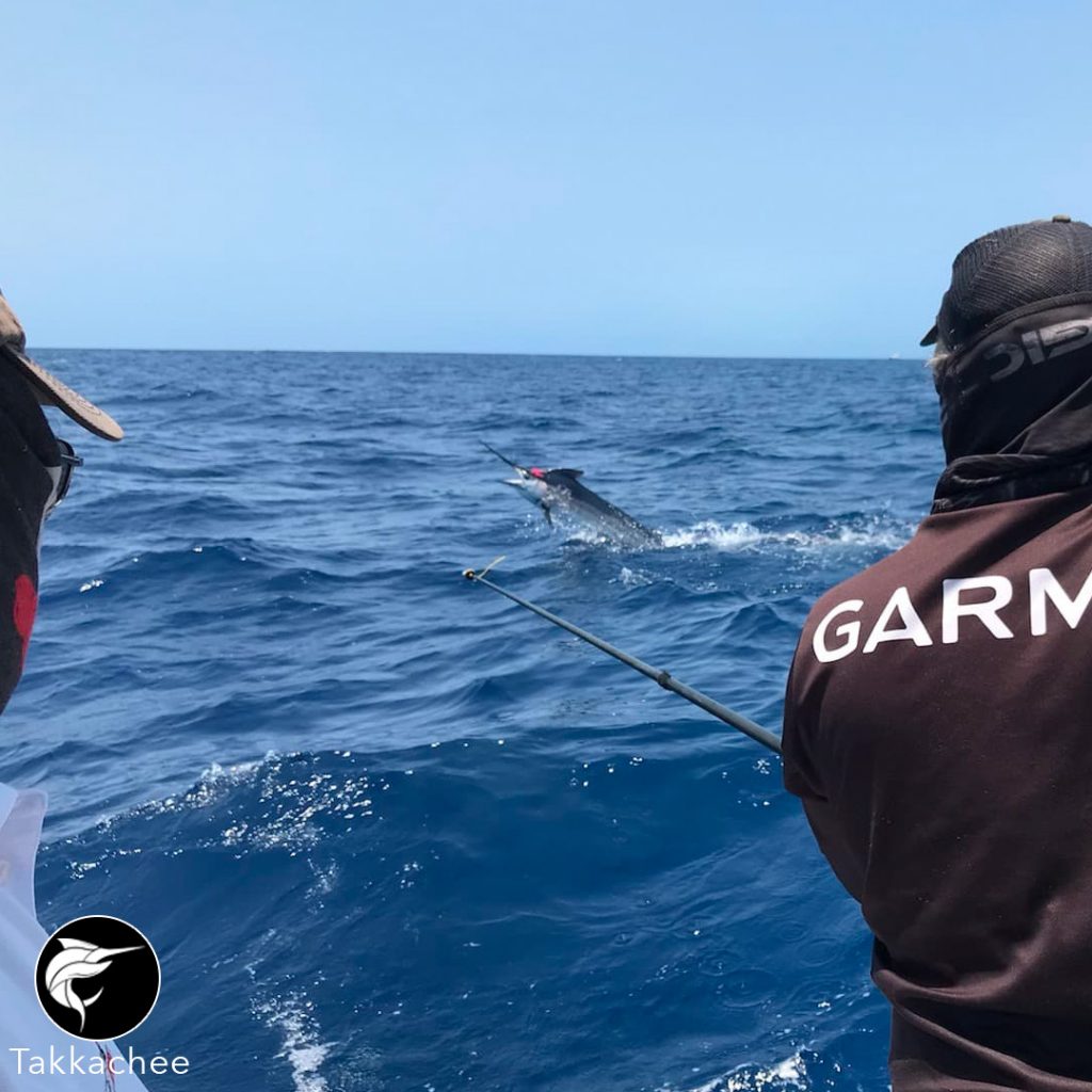 On the Sunshine Coast its been action stations on the little black marlin with MGFC club members getting into them (and thanks to Jamie for the comprehensive report!). TakkaChee went 3 from 4, Real Life 1 from 4, Knot Working 2 from 3, Ymer 1 from 5 , Yeah Bouy 2 from 5 and Roll the Dice 3 from 5. Photo from Michael Behrens on board TakkaChee. Jamie said young Michael’s been doing an awesome job on the camera and also drove on two of the fish!